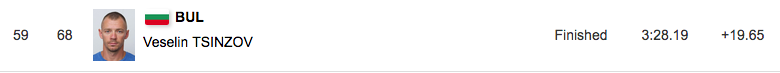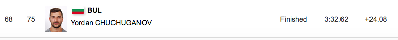 Другият българин Йордан Чучуганов остана 68-и на 24.08 секунди след финландеца.