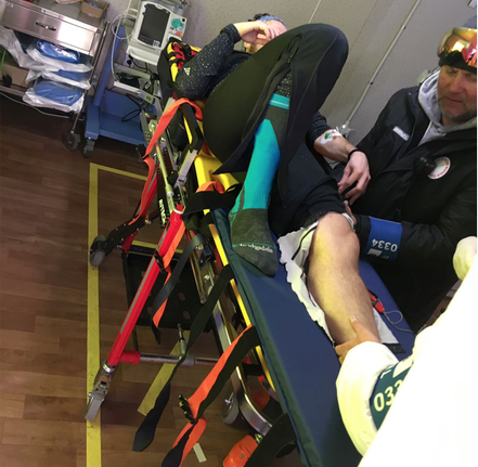 Лекарска помощ му беше оказана още на трасето, след което беше откаран от лекаря на Олимпийския тим от Русия в най-близката клиника.