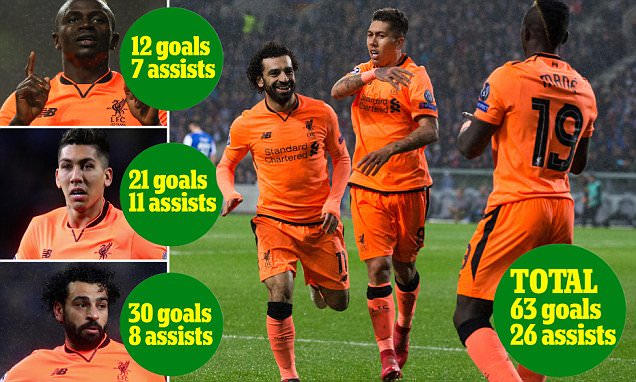Енергията и скоростта в играта на тримата в атаката на Ливърпул плюс голямото количество създадени положения значат, че всички те си помагат взаимно. Този сезон Фирмино е поднесъл пет гола на Салах, Мане е асистирал за четири гола на Салах, а Салах е създал четири гола на Фирмино. И това е, без да броим т.нар. хокейни асистенции.