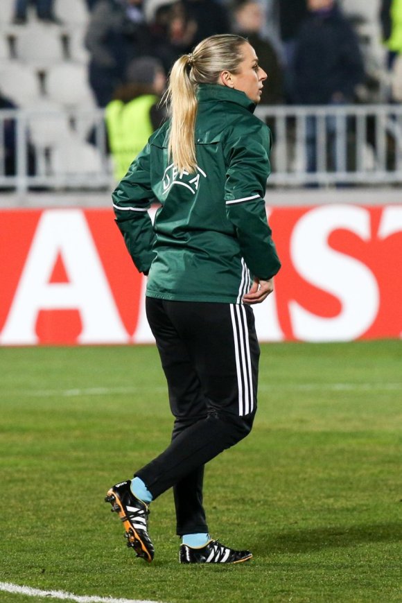Гръцката съдийка Хрисула Корумпиля се превърна в основна тема на разговор сред феновете по време на вчерашния 1/16-финал от Лига Европа между Партизан и Виктория (Пилзен), завършил без победител - 1:1. Красивата блондинка бе край тъчлинията в ролята на четвърти съдия, а местните почитатели на футбола се радваха на всяка нейна поява на терена, като постоянно й подсвиркваха.