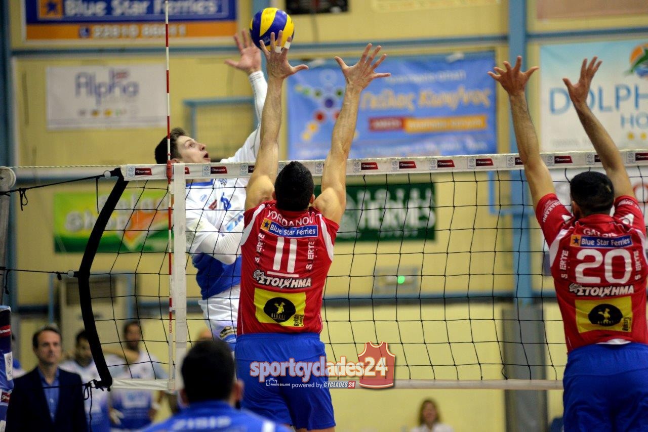 Българският диагонал Боян Йорданов и неговият Фойникас (Сирос) претърпяха тежко поражение в гръцката Волей лига, след като отстъпиха на осмия в таблицата Етникос (Пирея) с 1:3 (19:25, 25:19, 23:25, 18:25) в мач от 17-и кръг на първенството.