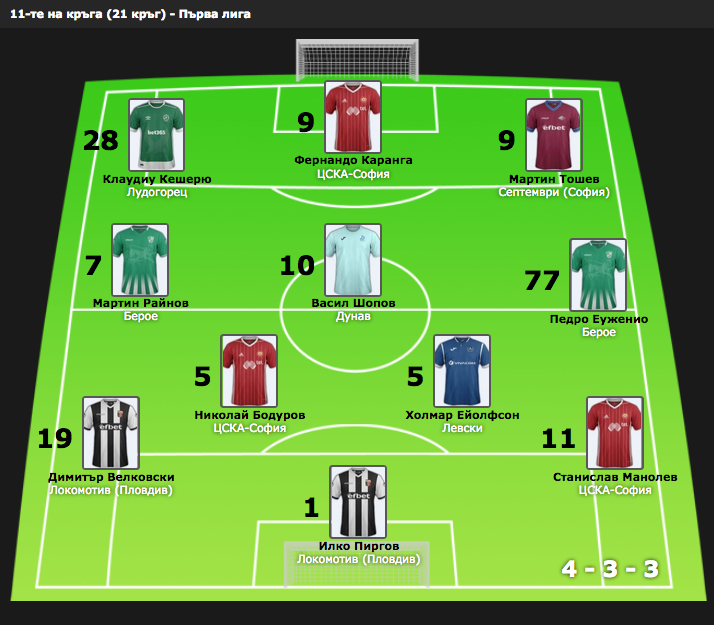 Идеалният отбор на Първа лига за изминалия кръг