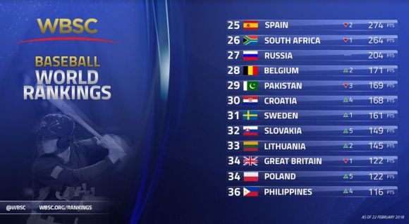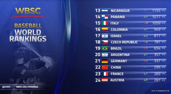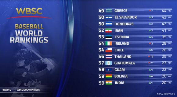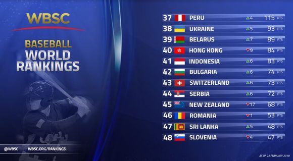 След повече от 3 години на втора позиция родината на бейзбола САЩ се завърна на първо място в световната ранглиста. В първото издание на класацията на световната конфедерация (WBSC) за 2018 г. американците изместиха от върха неизменния лидер от 2014 г. насам Япония, а мястото си в Топ 3 запази Корея.