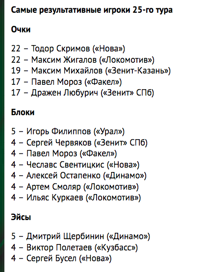 Българският посрещач раздели първото място с новото попълнение на Локомотив Максим Жигалов, който също се отличи с 22 точки (1 ас, 1 блок, 51% ефективност в атака - 20 точки от 39 атаки).