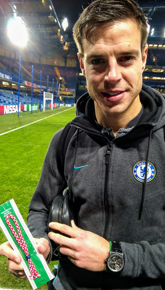 Настоящи и бивши футболни величия на английската Висша лига почетоха обичая за Баба Марта. Сред тях личат имената на актуалните капитани на лондонския Челси - суперзвездите Сесар Аспиликуета и Гари Кейхил. Легендите на Премиершип Пауло Ферейра, Джърмейн Джинас и Робер Пирес също уважиха българския празник, който честваме навръх 1-и март. Всички те си направиха специални снимки за спомен със симпатичните мартенички, като показаха съпричастността си към този стар наш традиционен обичай. Мартениците им бяха лично дарени от Кирил Евтимов при поредната му визита в Лондон, където той изгледа дербито от Шампионската лига между Челси и Барселона. Това не е първо такова хрумване на бургазлията, който и миналата година подари мартеници на играчи на "сините", един от които бе бразилецът Давид Луис – идея, родила се след разговор между Евтимов и Димитър Попов, който е шеф на българския фенклуб "Челси-България". Любопитното е, че двама от получилите мартеници - Кейхил и Пирес, са изявили желание и моментално са си ги вързали на китката, както обичаят повелява. "На всички им беше много интересно като получиха мартениците. На Кейхил това е за втори път, като и той и Джинас казаха, че ще се похвалят на българските си приятели, съответно Стилиян Петров и Димитър Бербатов. А на Пирес и Ферейра дадох и за семействата им, нека да се радват всички", споделя "човекът в кадър" Кирил Евтимов.