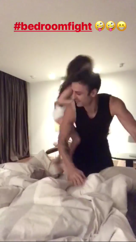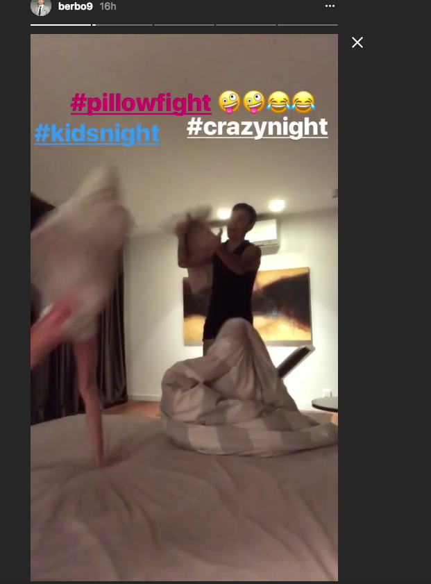 Димитър Бербатов, който се прибра в България след раздялата с Керала, си спретна страхотен бой с възглавници. Той води “неравна” битка в леглото с двете си дъщери - Деа и Елиа.