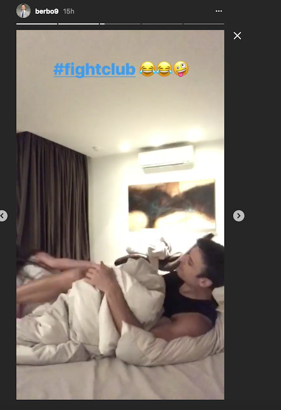 Бербо сподели в социалната мрежа Инстаграм няколко клипчета от веселбата, от които става ясно, че тримата много са се забавлявали.