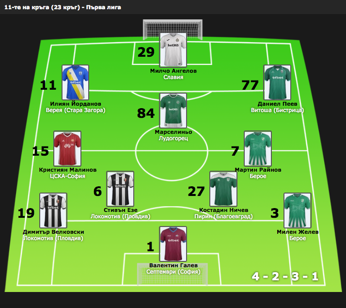 Идеалният отбор на Първа лига за изминалия кръг (XXIII)