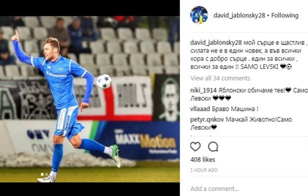 Защитникът на Левски Давид Яблонски публикува интересно послание на профила си в Инстаграм след успеха с 3:2 над Черно море. Той бе един от голмайсторите в мача и помогна на отбора си да стигне до ценни три точки във Варна.