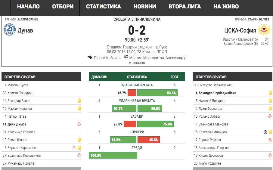 Не Каранга, а друг футболист е вкарал първия гол за ЦСКА-София при победата с 2:0 над Дунав в Русе. Това поне твърди реферът Георги Кабаков, който е написал попадението на Кристиян Малинов.