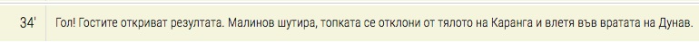 Както е известно, в тази ситуация халфът опита изстрел, който отиде към Каранга, бразилецът отклони топката с ръка и тя влетя в мрежата на русенци за 1:0. Голът трябваше да бъде отменен, но реферът го призна.