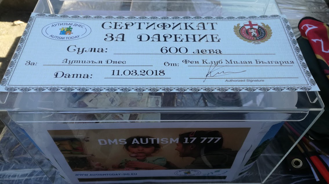 Не на последно място, естествено, играчи и зрители, почитатели на двата отбора, дариха пари за фондация „Аутизъм Днес“. Също така официалният фен клуб на Милан в България дари сумата от 600 лева за закупуването на люлки за рехабилитация за един от центровете на фондацията. Сумата беше остатък след проведената екскурзия за мача с Лудогорец в Разград преди няколко седмици, където 127 родни миланисти видяха своите любимци на живо.