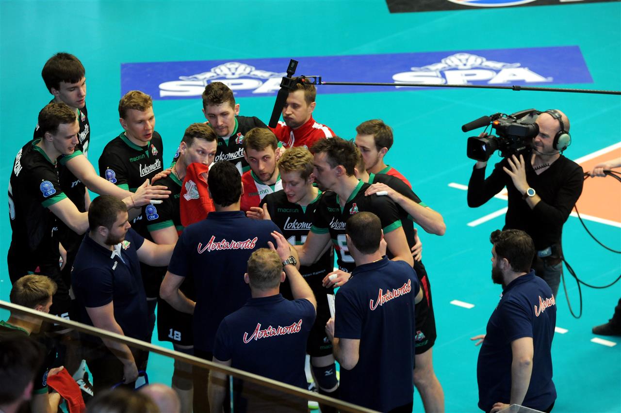 Нолико поведе с 2:0 гейма, след доста грешки на волейболистите на Локомотив. В третата част домакините дръпнаха с 15:10, 19:16 и 21:17, но момчетата на Пламен Константинов, не само че съумяха да изравнят, но и дори поведоха с 23:22. Последваха множество равенства до 28:28. При следващото разиграване волейболист на Нолико изпълни начален удар, играчите на Локомотив посрещнаха добре, а Маркус Нилсон атакува. Топката тупна извън игрището на Нолико, но всички волейболисти на руския тим вкупом дадоха да се разбере, че блокадата на Нолико е играла с топката и поискаха от наставника си Пламен Константинов да поиска видео повторение.