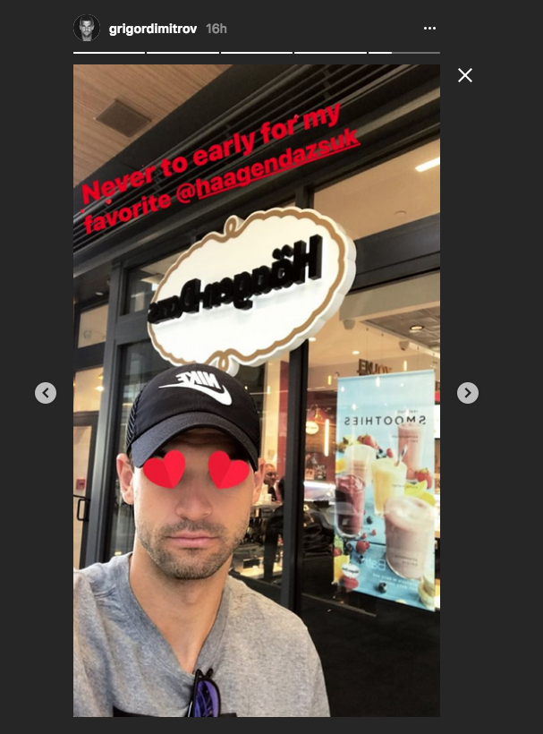 Така прекарва времето си между тренировките световният №4 преди отново да се завърне на корта. Най-добрият български тенисист е в негативна серия, след като заради контузия пропусна турнира в София, а след това записа последователни загуби в първите си мачове на турнирите в Дубай и Индиън Уелс.