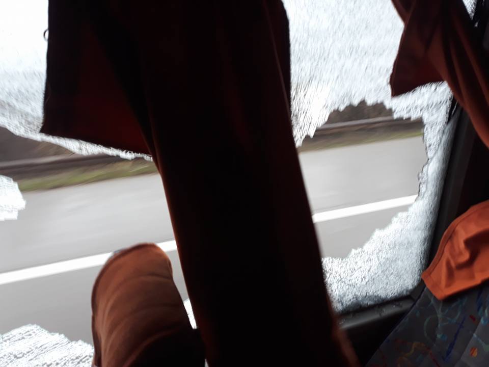 От автомобилите изскочили около 30-40 души, които са хвърляли камъни по автобуса и са изпочупили стъклата. "В автобуса има и деца, като по чудо няма пострадали“, коментираха привърженици.