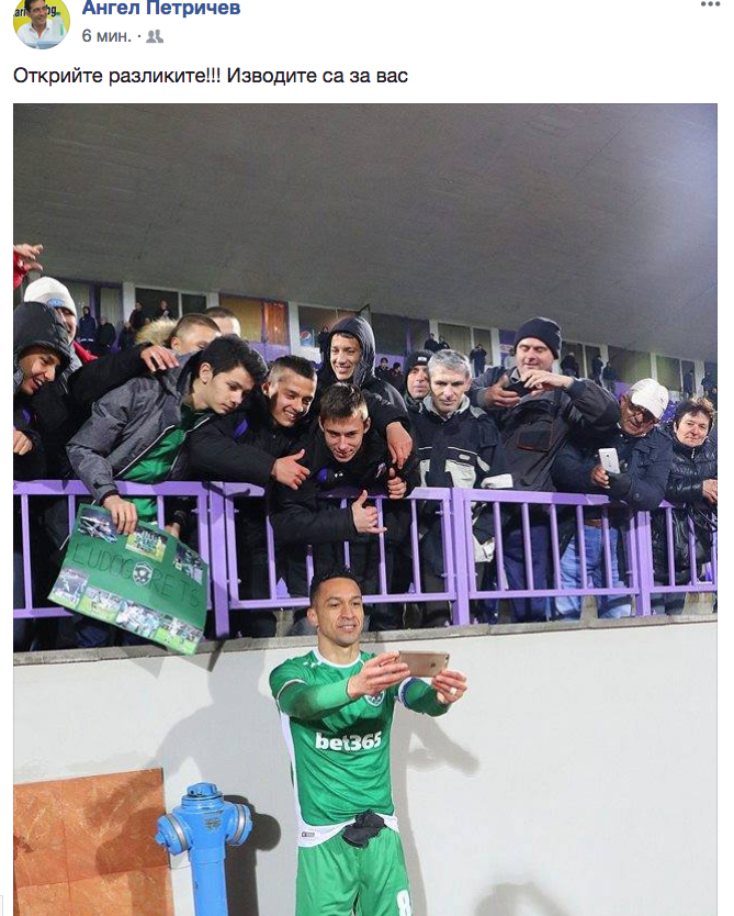 Изпълнителният директор на Лудогорец Ангел Петричев показа в официалната си страница във “Фейсбук” снимка, на която се вижда как Марселиньо си прави селфи с фенове на Етър. На фотоса ясно личи как привържениците на тима от Търново се радват на бразилеца.