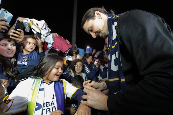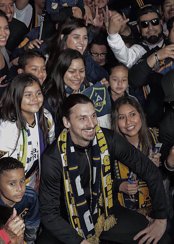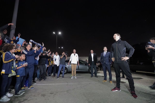 Шведската звезда Златан Ибрахимович бе посрещнат от сериозен брой фенове на летището в Лос Анджелис. Както е известно, 36-годишният нападател наскоро се раздели с Манчестър Юнайтед и се присъедини към американския клуб Лос Анджелис Галакси. Ибра може да дебютира за новия си тим още в дербито с Лос Анджелис ФК, което е днес.