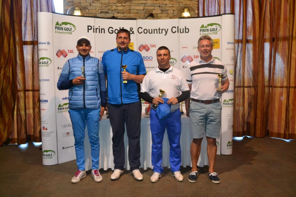 На първо място, с отборен резултат от 48 нетни точки, се нареди отборът на възпитаниците на голф школата на Пирин Голф и Кънтри Клуб – Борислав Крачанов и Васил Асеов. Второто място бе отредено за отбора на Уорън Смит и Марк Кели, с и резултат от 46 нетни точки. Почетното трето място зае отбор на баща и син – Димитър и Петър Белелиеви, с само точно по-малко от вторите в класирането(45).