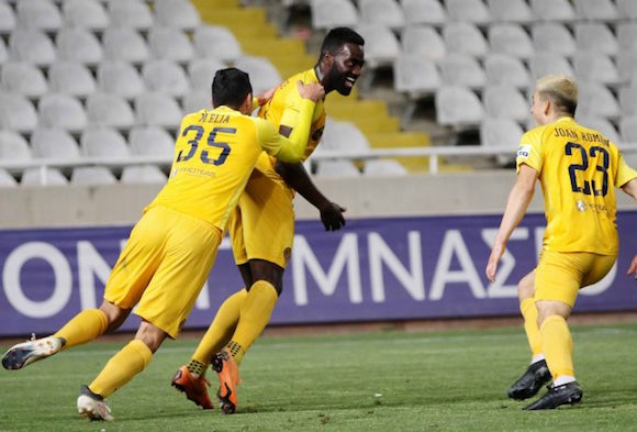 Мат Дербишър откри за Омония с глава в 18-ата минута, а драмата настъпи в края на двубоя. Първо бранителите на домакините оставиха Жоан Роман непокрит около границата на наказателното поле, а в третата минута на добавеното време Кану получи червен картон и остави Омония с човек по-малко. Секунди по-късно Кевин Пиер Лафранс се разписа отблизо и донесе победата на АЕЛ.