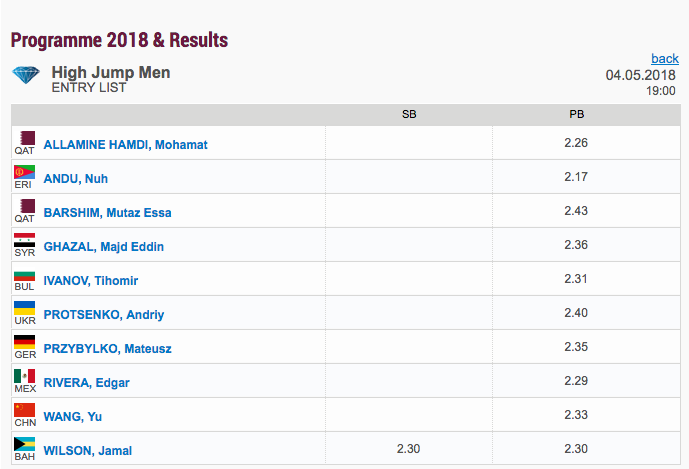 Миналата година Тихомир Иванов направи дебют в турнирите от Диамантената лига. В Париж той се нареди четвърти с 2.28 м. Иванов вече има и място в тройката в надпревара от престижната верига, след като завърши втори в Рабат през 2017-а с 2.27 м.