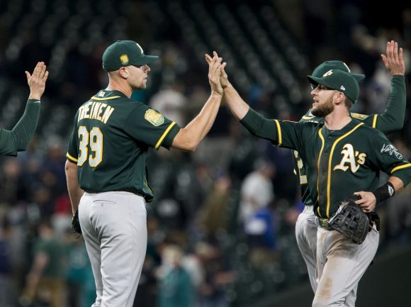 Тази нощ Сиатъл поведе с 2:0 в 3-тия ининг. Район Хийли удари хоумрън, а Хеан Сегура добави RBI-сингъл срещу стартера на Оукланд Брет Андерсън.