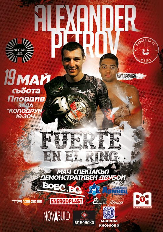 Александър Петров излиза в изключително вълнуваща демонстративна среща - мач спектакъл, който ще изправи всички любители на бойните спортове на крака! Любимецът на град Варна Петров ще се изправи срещу класния боец от Mike's Gym Mike Sprangh. На 19-ти ще имате възможност да видите Александър в една страхотна форма, която постоянно подържа, а сега се готви повече от усилено, за да Ви зарадва с една красива и много технична игра, както сме свикнали да го виждаме.