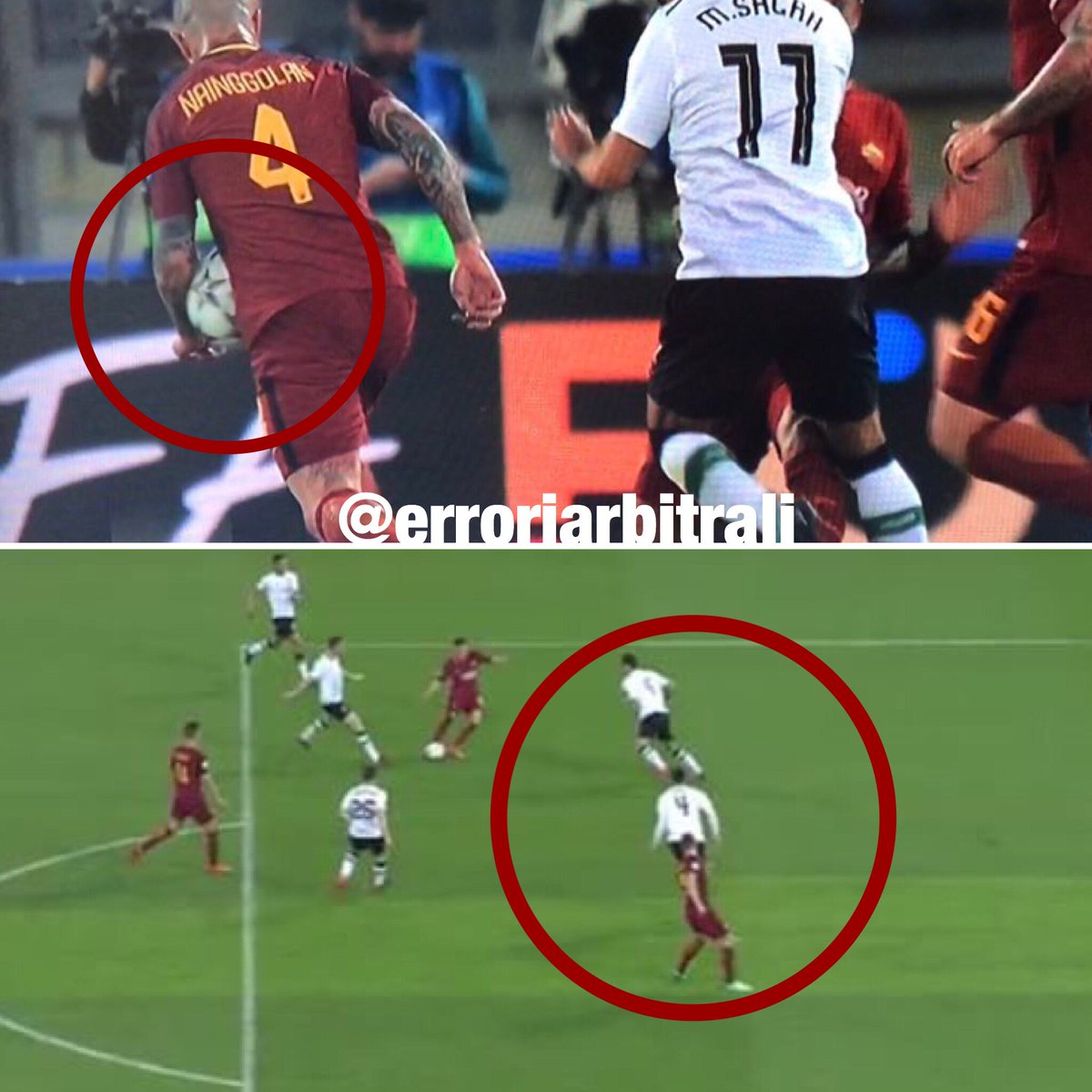 Съдийството и темата за въвеждането на технологията ВАР в мачовете от Шампионската лига отново стана водеща след снощния зрелищен реванш от полуфиналите на турнира между Рома и Ливърпул (4:2). Домакините имат сериозни основания да се считат ощетени заради двете очевидни нарушения за дузпи, които останаха неотсъдени. При първата ситуация в - 49-ата минута, Един Джеко бе препънат от Лорис Кариус в наказателното поле, но страничният рефер бе вдигнал флага си, маркирайки засада на нападателя. Повторенията обаче показаха, че такава няма. При втората - в 63-ата минута, Трент Александър-Арнолд спря с ръка топката след удар на Стефан Ел Шаарауи. Незнайно как никой от съдийската бригада не видя това нарушение. Играта с ръка е очевидна, но положението предлага още един повод за дискусии. От лагера на Рома настояват, че освен дузпа, десният бек на Ливърпул е трябвало да получи директен червен картон. Това обаче не е така, ако се позовем на промяната на правилото за т.нар. "тройно наказание", която бе въведена от 1 юни 2016-а година, но все още се забравя от мнозина. Според корекцията въпросното тройно наказание, включващо отсъждане на дузпа, показване на червен картон и последващо спиране на правата на играча, не се налага и футболистът, който е предотвратил голова възможност, получава само жълт картон, освен ако: