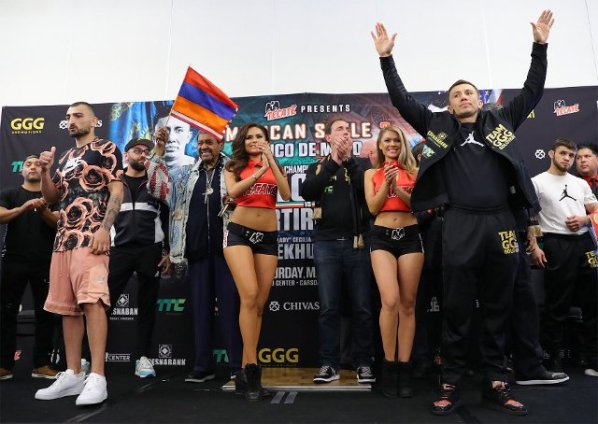 Головкин (37 победи, 33 с нокаут и 1 равен) ще се изправи в Карсън, Калифорния срещу американеца от арменски произход Вейнс Мартиросян - Кошмара (36 успеха, 21 с нокаут, 3 поражения и 1 равен). 12-рундовата битка ще бъде за две от световните титли в средна категория.