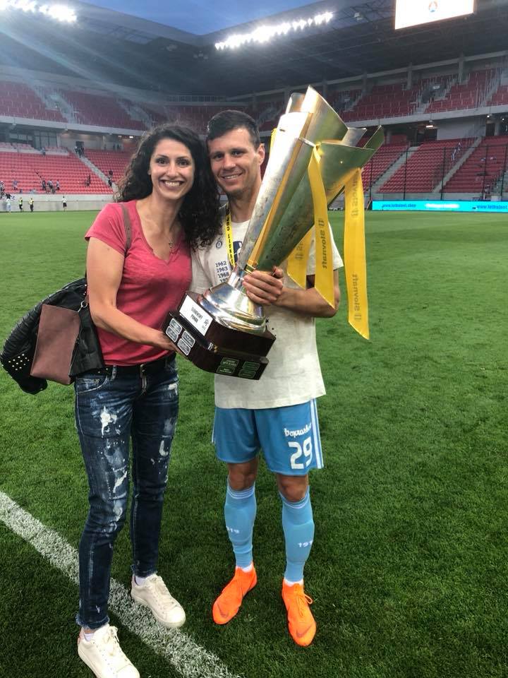 Ева изгледа на живо изявите на своя любим футболистът Васил Божиков. Тя бе на стадиона в Братислава, където националът вдигна Купата на Словакия и бе в основата за успеха на тима на Слован.