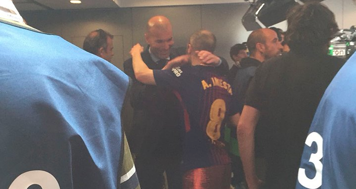 Въпреки напрежението по време на снощния двубой между Барселона и Реал Мадрид, старши треньорът на “белите” Зинедин Зидан прояви уважение към футболиста на съперника Андрес Иниеста, за когото това бе последно Ел Класико. След мача французинът чинно изчака магьосника от Фуентеалбийя в продължение на 5 минути, за да се прегърне с него за сбогом.