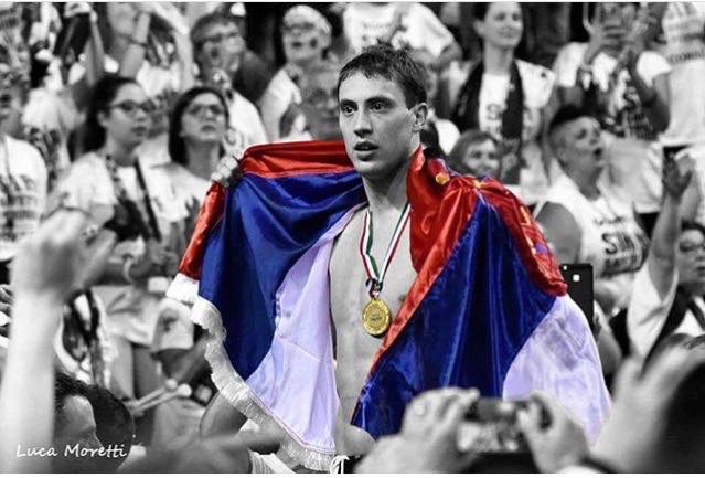 Красавицата бе в залата да подкрепи звездата на сръбския национален отбор волейболистът Александър Атансиийвич с когото са заедно повече от година. Пред погледите на дупничанката сърбинът вдигна Купата и взе приза за най-полезен играч на Скудетото за 2017/2018 година.