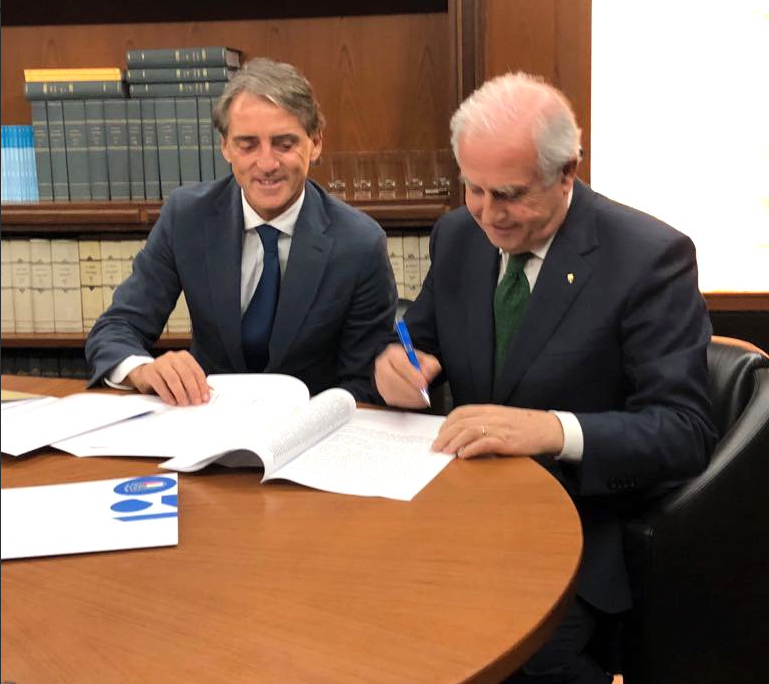 Роберто Манчини бе представен като новия селекционер на националния отбор на Италия в 45-минутна пресконференция, на която отговори на редица важни въпроси, свързани с бъдещето на италианския футбол и “Скуадра Адзура”. Специалистът бе представен от президента на футболната федерация в страната Роберто Фабричини, който обяви избора на Манчини като най-подходящ за възраждането на националния отбор на Италия.