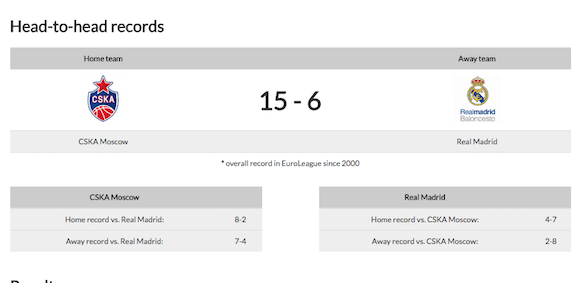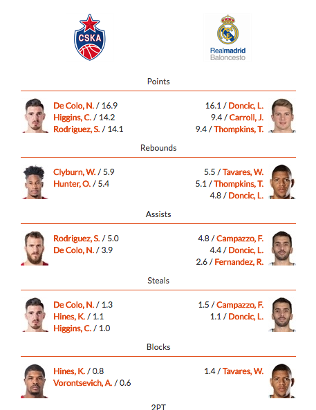 Мачът противопоставя двата най-ефективни отбора в нападение в целия турнир (ЦСКА вкарв по 89.2 точки, а Реал по 85.7 точки), а в останалите статистически категории цифрите изглеждат наистина изравнени.