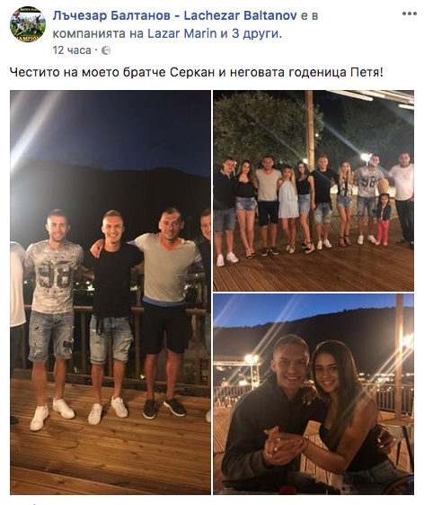 Капитанът на Ботев Лъчезар Балтанов публикува снимки от щастливия момент на своя съотборник в профила си във “Фейсбук”. На събитието присъстваха още Тодор Неделев и Лазар Марин, които бяха със своите приятелки.