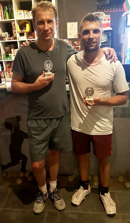 В надпреварата при средно напредналите Валентин Бонев победи Мирослав Василев с 2:1 сета (4:2, 2:4, 8:6). Мачът започна равностойно, но при 2:2 Мирослав проби сервиса на Валентин и взе първия сет. Във втория сет, при 2:2 спря осветлението, а смяната на корта се оказа решаваща за изхода на двубоя. Кратката почивка даде шанс на Валентин да се мобилизира и при 2:2 той успя да пробие и да спечели сета с 4:2. В решаващия тайбрек сет Мирослав стигна пръв до мачбол, но Валентин го отрази, взе следващите две разигравания и спечели срещата.