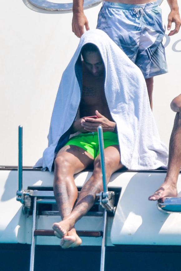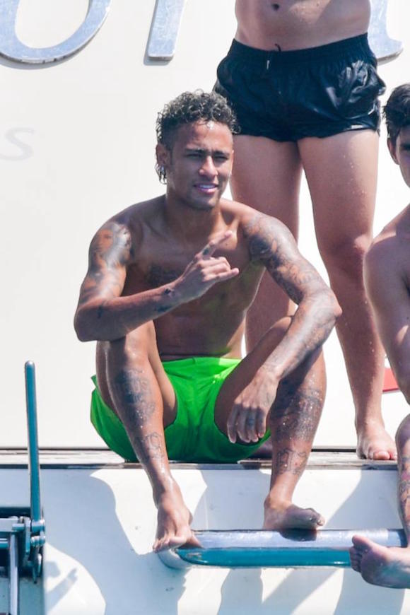 Неймар отпразнува бомбастичния си трансфер в Пари Сен Жермен с парти на яхта в Сен Тропе. 25-годишният бразилски нападател събра куп приятели, броени дни след като премина в Лига 1 срещу рекордните 222 милиона евро.