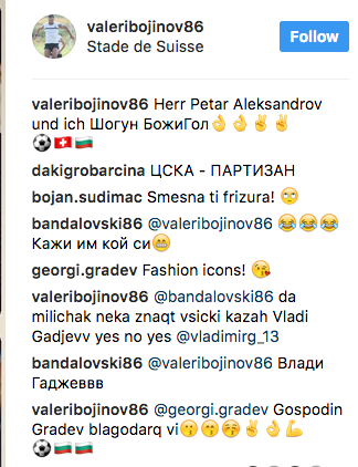 Първо с нова прическа. Този път бившия национал се показа с бретон и изненада феновете си. Снимката е с характерното вече за Божинов козируване.
