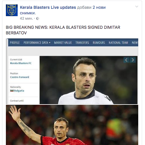 След година извън футбола Димитър Бербатов отново има тим и това е индийският елитен Керала Бластърс. Този следобед част от фенсайтовете на клуба съобщиха, че българският играч е подписал своя договор. Засега обаче няма официално потвърждение.
