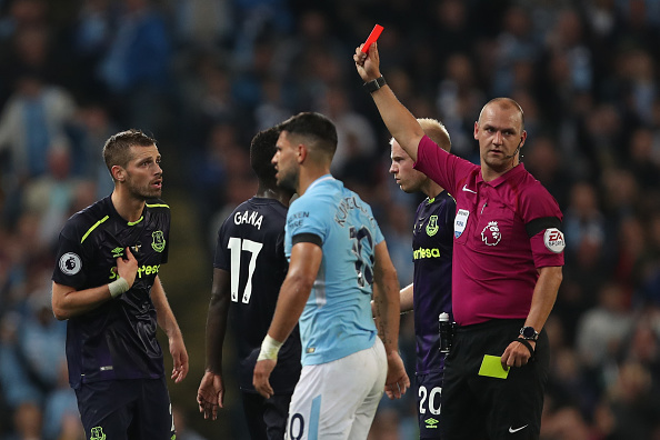 Отборът на Манчестър Сити се добра до равенство 1:1 в домакинството си на Евертън от 2-ия кръг на Премиър лийг. "Гражданите" първи получиха гол в своята врата в 35-ата минута, когато Уейн Рууни откри за гостите. След това домакините останаха и с 10 души на терена заради червен картон на Кайл Уокър в 44-ата минута. Въпреки това те изиграха много силно второ полувреме и дори в намален състав успяха да стигнат до равенството с попадение на Рахим Стърлинг в 82-ата минута. В края и Евертън остана с човек по-малко, след като и Морган Шнайдерлин получи червен картон.