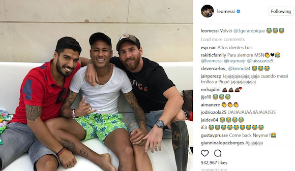 По същото време и Неймар качи своя снимка с любимия на Шакира с нашумялото “Остава”.