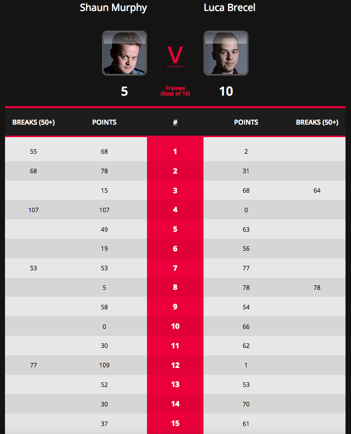 Шон Мърфи, въпреки поражението и неуспеха да грабне осма ранкинг титла, се утеши с чек за 75 хиляди паунда, а и с изкачване от осмо до пето място в световната ранглиста.