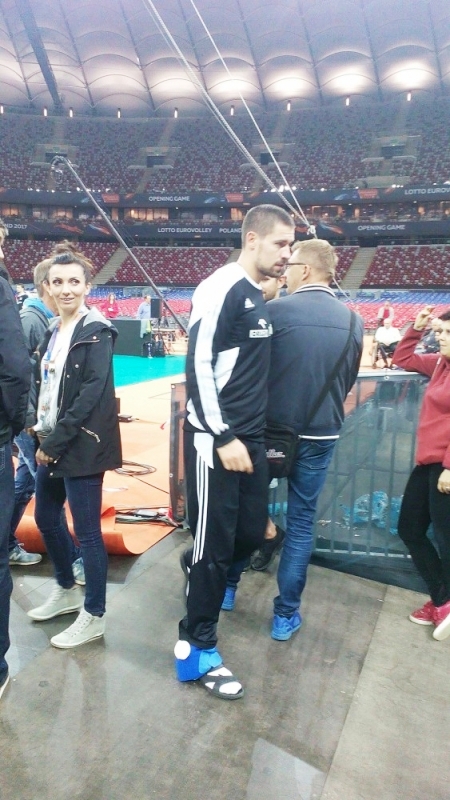 Снощи, по време на последната тренировка на Полша преди мача на откриването на шампионата срещу Сърбия, пък нова контузия стресна щаба на Де Джорджи. Основният диагонал на тима Давид Конарски е получил травма и не е ясно дали ще играе или не. Появи се снимка, на която се вижда как той напуска тренировката с превръзка и лед върху десния крак.