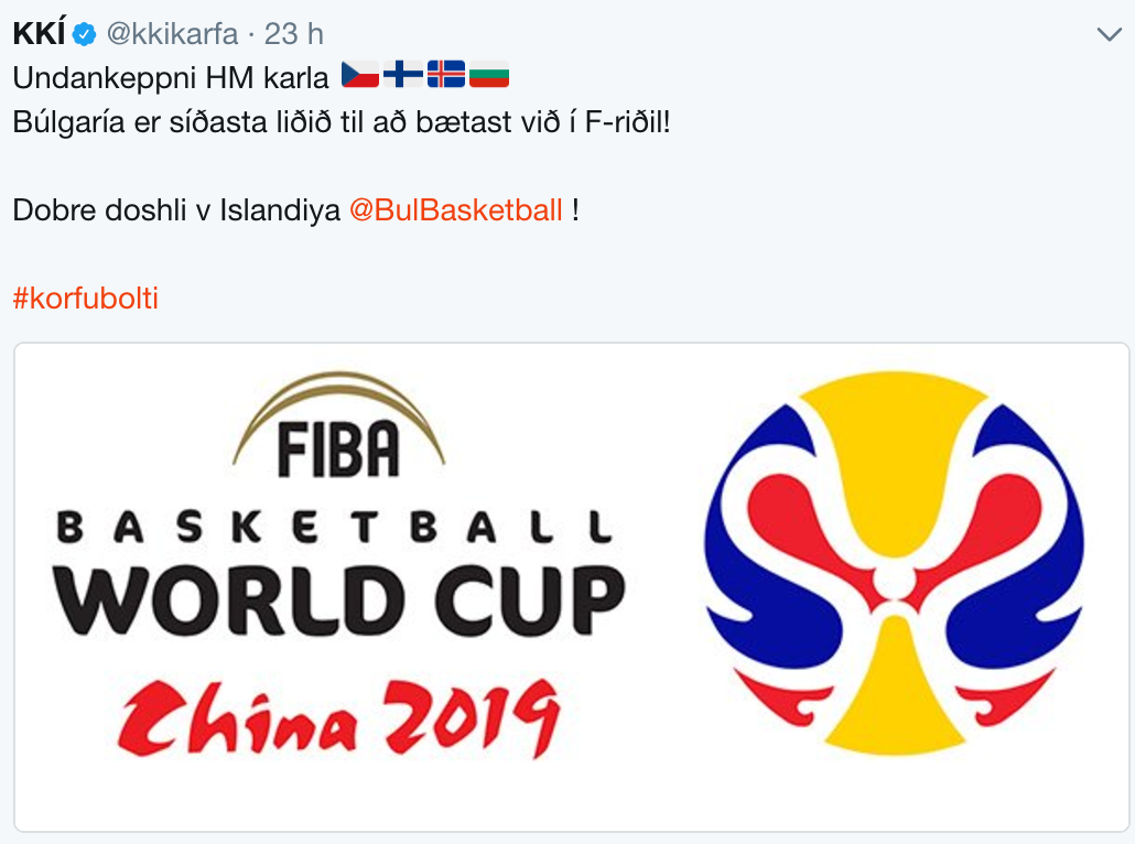 Един от съперниците на България в същинските квалификации за баскетболния Мондиал 2019 в Китай показа добри маниери след днешния жребий, който отреди на националите да играят с Исландия, Финландия и Чехия. Исландците отправиха специален поздрав към “лъвовете” чрез официалния си профил в Twitter.