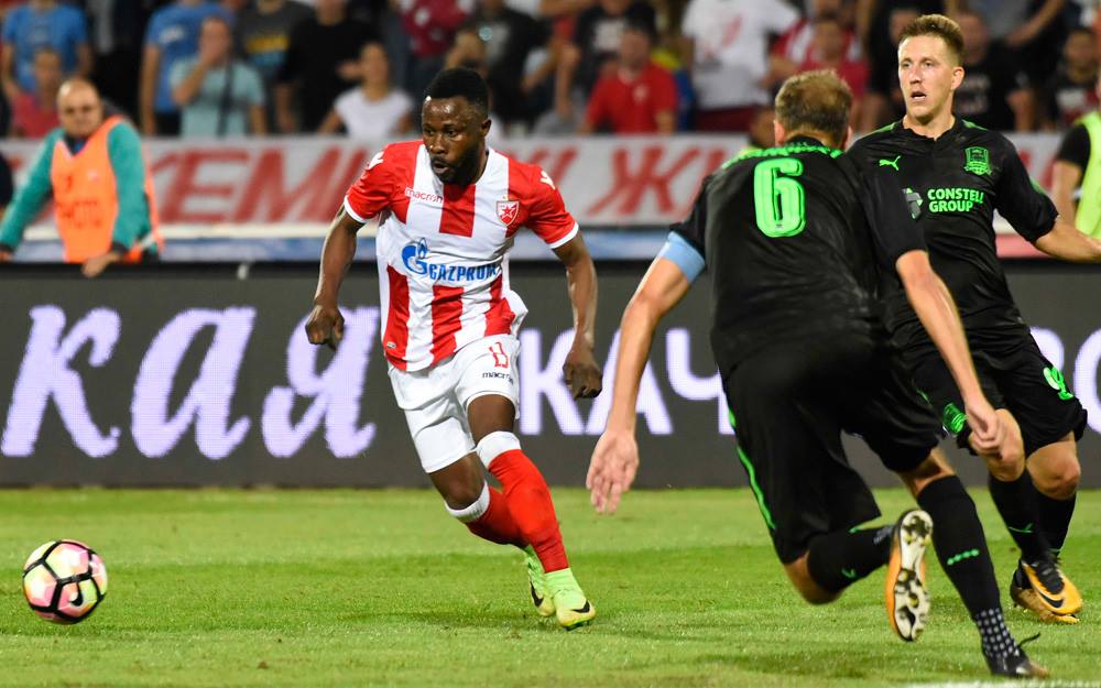 26-годишният африканец вкара втория гол при снощната победа с 2:1 над Краснодар, която изстреля сърбите в орбитата на групите на евротурнирите. Нещо, което не се бе слувало от 10 години. Канга вдигна всички по трибуните на култовия стадион “Маракана”, чието официално име е “Райко Митич”, отбелязвайки в стил “Марко Асенсио”. А за да бъде всичко още по-ефектно, голът му падна направо от съблекалнята, в първата атака на домакините за второто полувреме.