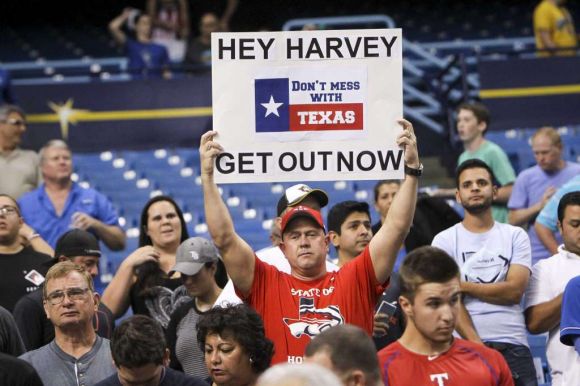 Ураганът Харви, който през последните дни наводни и опустоши Хюстън, принуди бейзболните тимове на Хюстън Астрос и Тексас Рейнджърс да преместят своето дерби от МЛБ на почти 2000 км разстояние. Двата щатски съперника от Западната дивизия на Американската лига откриха тройната серия помежду си тази нощ с двубой на ст. "Тропикана Фийлд" в Сейнт Питърсбърг.