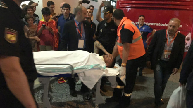 Халфът веднага беше заменен, но е продължил да се чувства зле, като е имал световъртеж и е повръщал. След мача той беше откаран в болница в Толедо. Още преди това пък от лекарския щаб на Испания му поставиха фиксатор на врата.