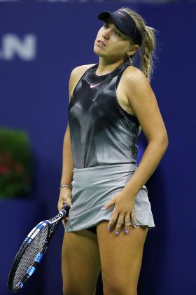 ранглистата на WTA, Кенин показа, че не се притеснява да играе срещу тенисистката, която определя за свой идол. Тя допусна ранен пробив, но веднага го върна. Шарапова обаче поведе с 4:1 и задачата й до края на сета изглеждаше лесна. Кенин отново съумя да пробие, но при 5:5 направи няколко непредизвикани грешки на свой сервис и наказанието не закъсня.