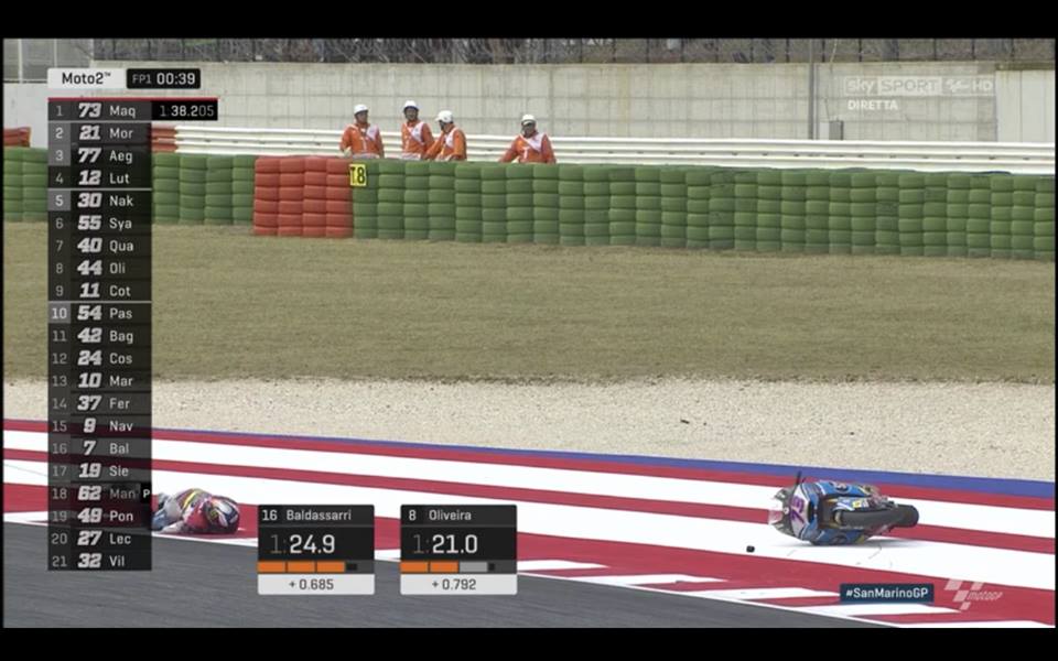 Тежката катастрофа на Алекс стана в заключителните етапи от сесията, след като той вече бе записал най-бързата обиколка на пистата и завърши сесията на върха в подредбата. На второто място остана съотборникът му и бъдещ пилот в кралския клас през следващия сезон Франко Морбидели, а трети завърши Доминик Агертер.