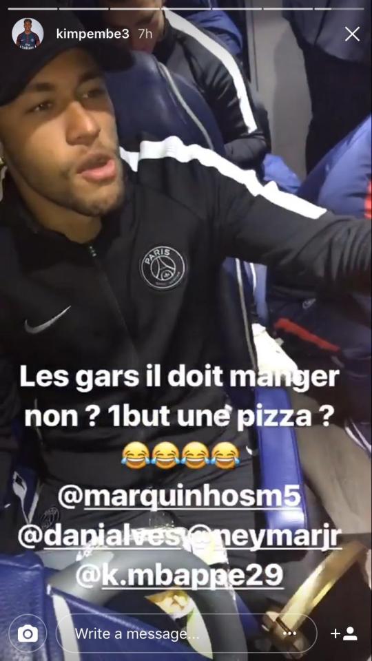 Преснел Кимпембе засне с мобилния си телефон сцената, в която предлага на 18-годишния си съотборник червена кутия с пица. Мпабе обаче отговаря: “Вече ядох”.