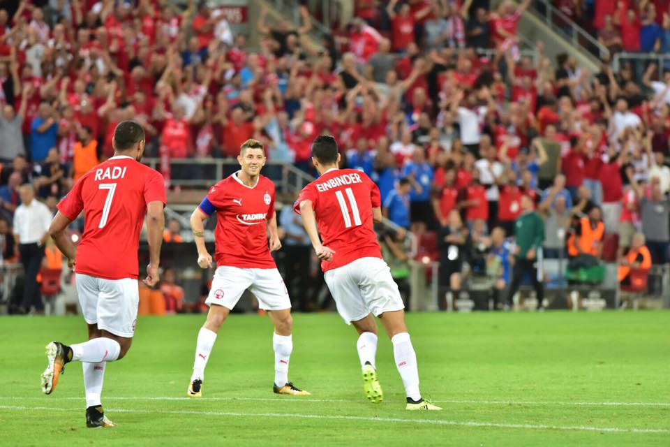 Двубоят стартира уникално за домакините. След само 120 секунди игра Меликсон асистира на Айнбиндер, който безкомпромисно матира стража на гостите. В 11-ата минута резултатът можеше да се промени, но звездата на Апоел Томаш Пекхарт пропусна дузпа. Вратарят на Лугано показа класа, спасявайки шута на чешкия футболист.